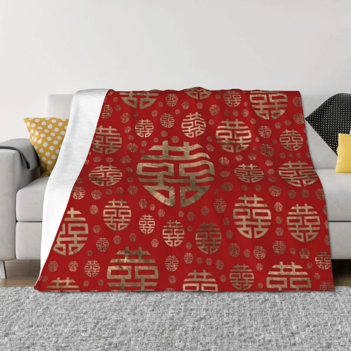 Double Happiness Symbol pattern - Gold on red Throw Blanket Fashion Sofas Stuffeds Beautifuls For Sofa Thin Blankets