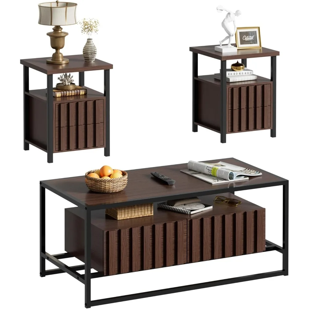 журнальный столик из 3 предметов, набор столов для гостиной, журнальный столик середины века, набор из 2 приставных столиков с 2 ящиками для гостиной и б