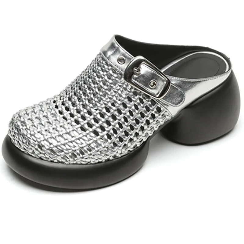 Новые дышащие женские сандалии с открытой пряжкой на ремне, летние пляжные прогулочные модные черные, серебристые уличные тапочки, размеры 35-45