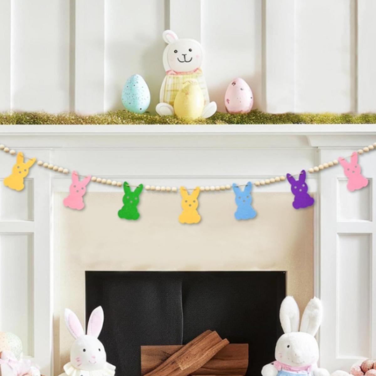2 шт. пасхальная гирлянда с бисером в виде кролика с разноцветными подвесками в форме кролика, разделенными деревянными бусинами, для весеннего тематического празднования Пасхи разноцветный