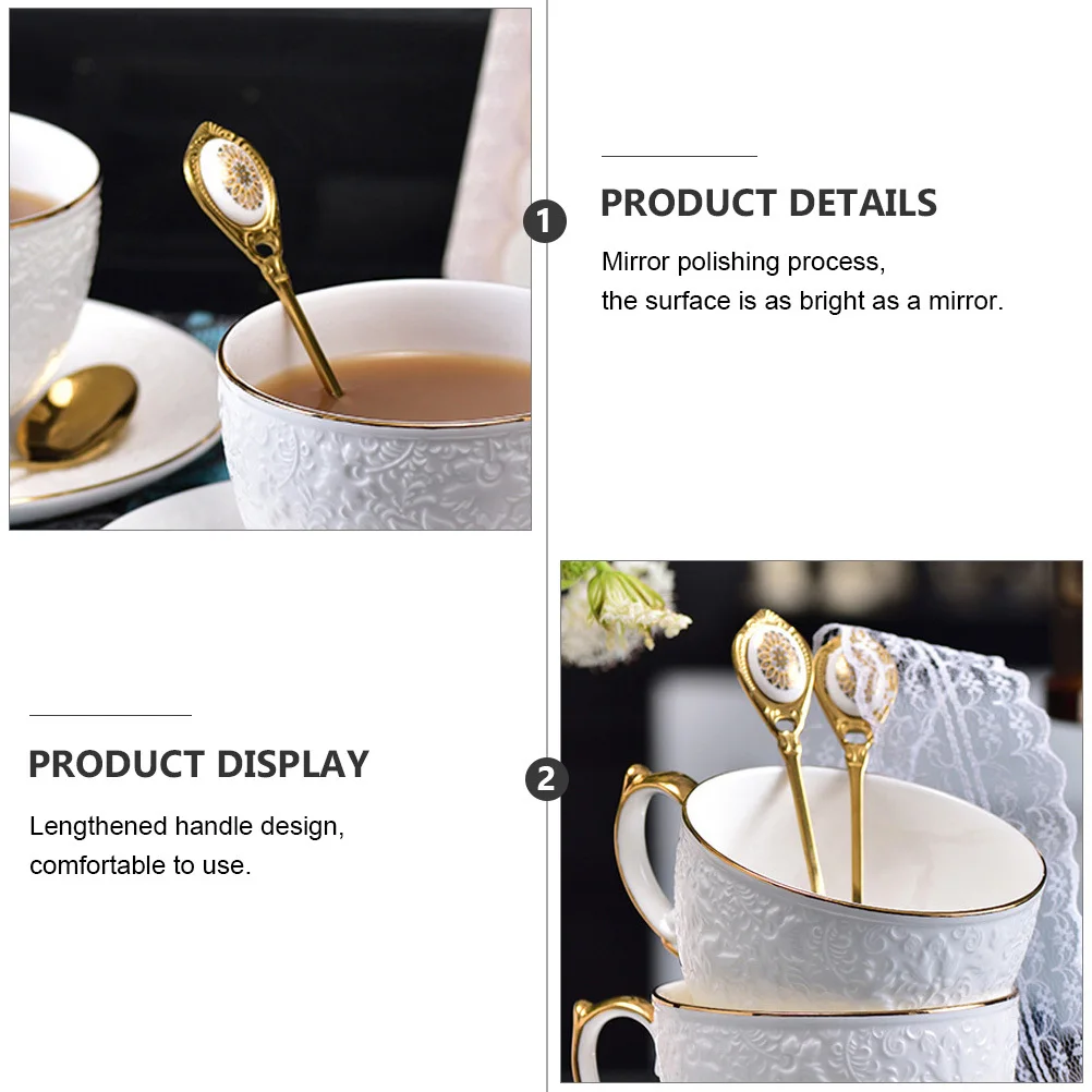 2 шт., ретро кофейные ложки из нержавеющей стали, керамическая декоративная ручка, ложки для перемешивания для кофе, десерта, коктейлей, напитков