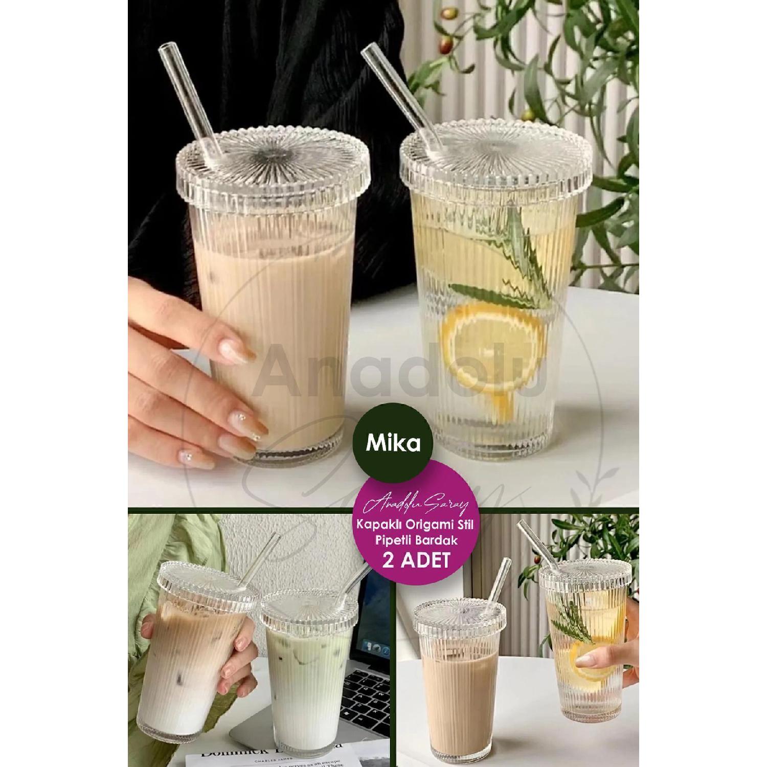 2 шт. слюды (не стекло) Стакан в стиле Оригами с крышкой и соломой, стакан для безалкогольных напитков холодного кофе