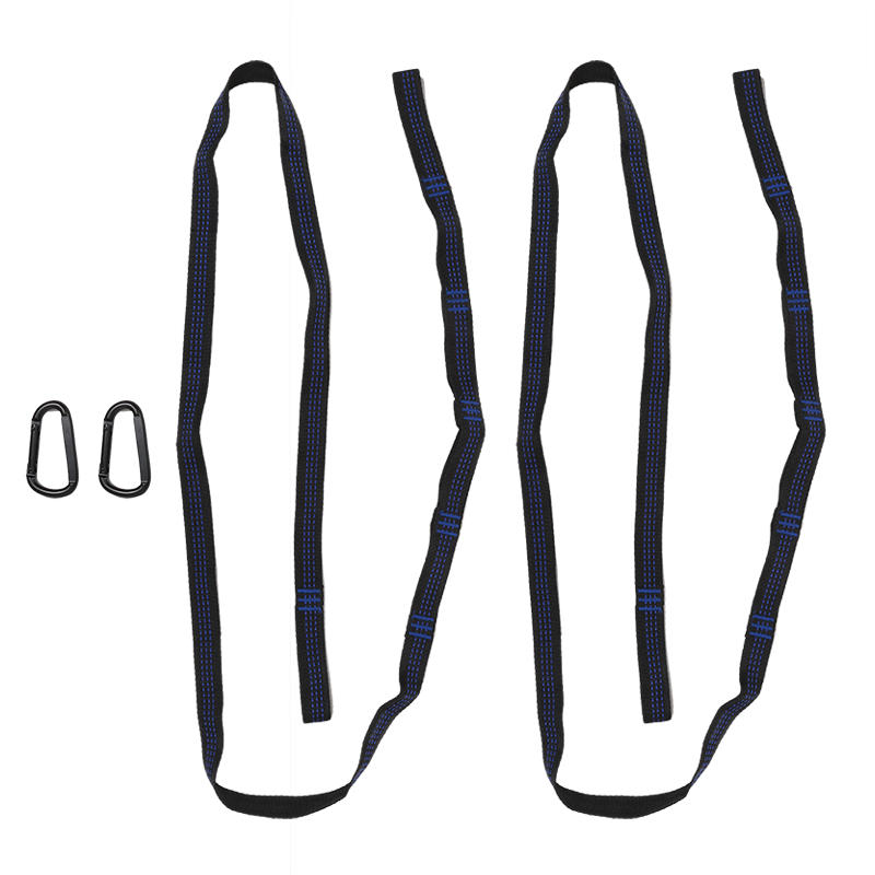 2 шт. усиленных полиэстеровых ремней с карабинами для кемпинга на открытом воздухе, сверхпрочные легкие ремни для гамака на дерево One Size синий