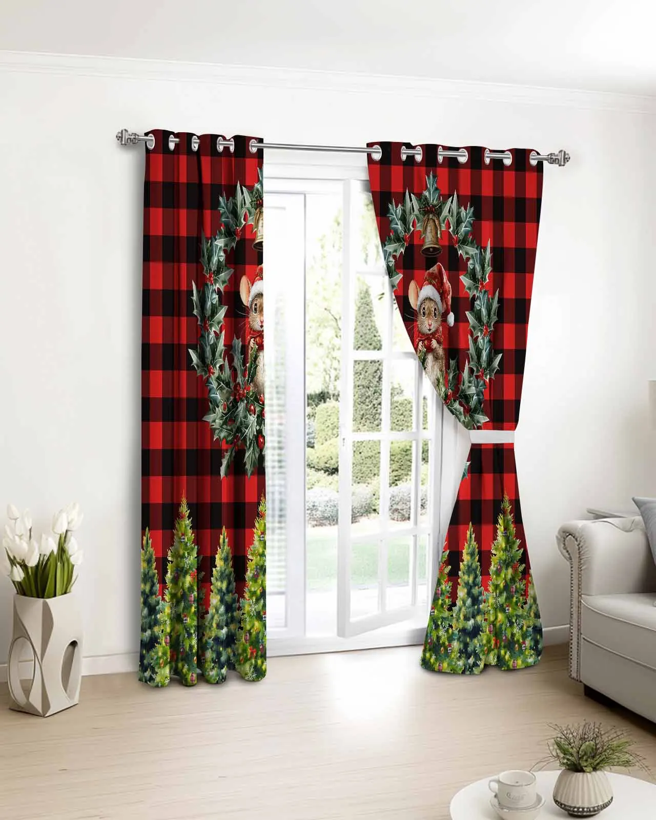 2 шт., 1 панель, красно-черный клетчатый колокольчик, милые животные, полиэстеровые оконные шторы для гостиной, кухни, спальни, шторы