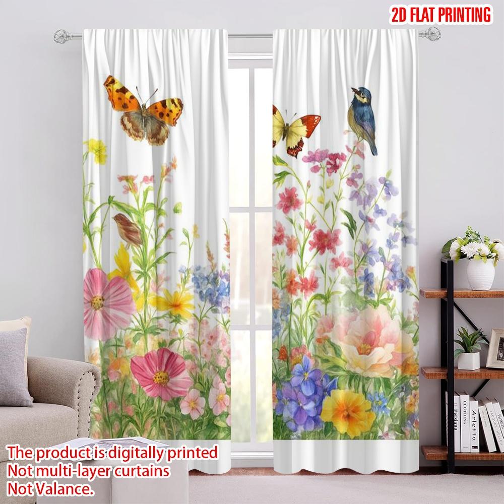 2 шт., 2D плоская печать Штора Популярная Цветущая Гармония Прочная ткань 100% полиэстер (без удилища) Подарки для спальни, гостиной 52.50 × 116.00 cm 2 pcs