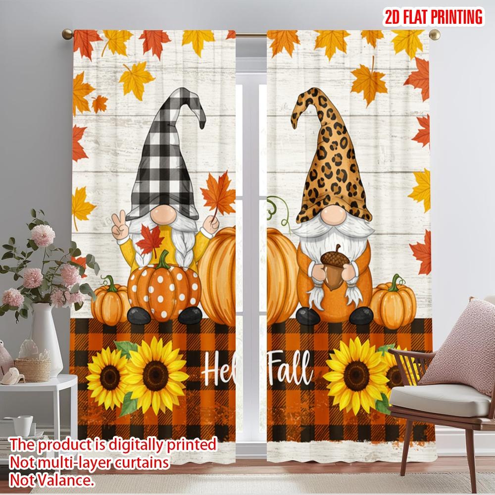 2 шт. 2D плоская печать Шторы для окон Привет Осень Гномы Тыквы Полиэстер Без электричества Вечеринка по случаю дня рождения Идеально для дома и 52.50×116.00 CM 2pcs