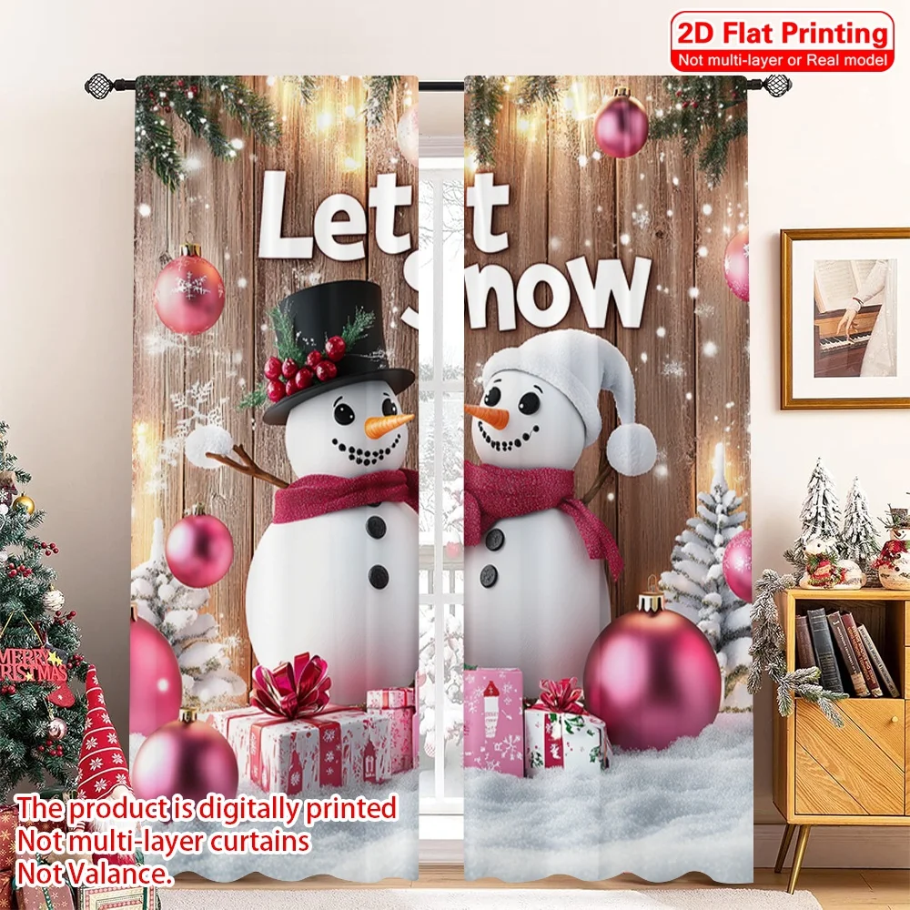 2 шт., 2D плоская печать, популярные оконные шторы с Рождеством, милый снеговик с розовым рождественским шаром, серый полиэстер без