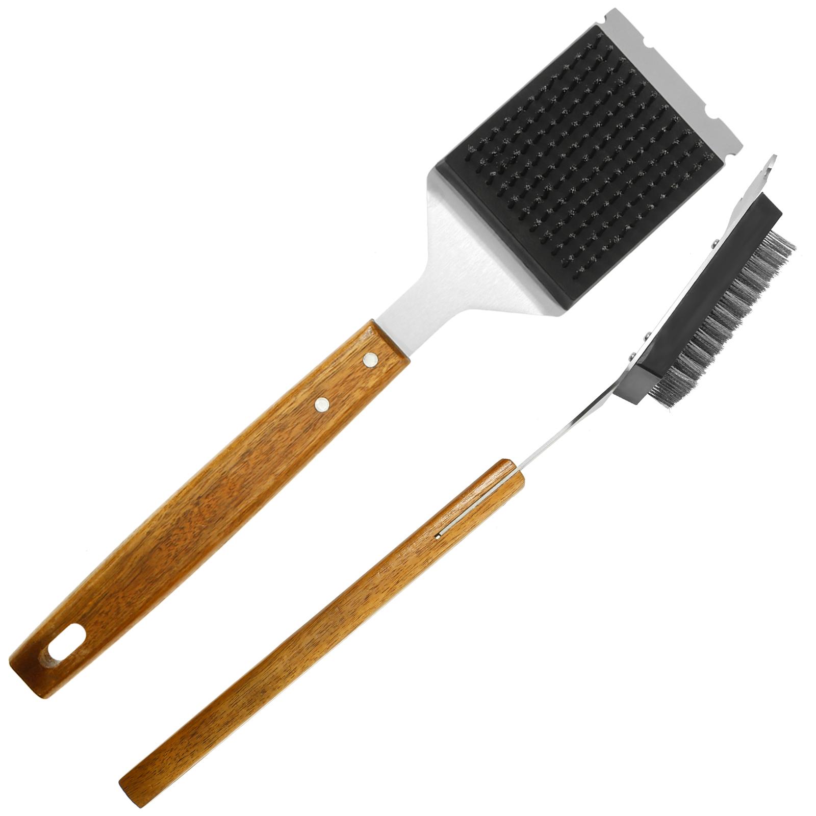 2 шт. 42 см Набор щеток для чистки гриля Барбекю Барбекю Нержавеющая сталь Длинная ручка Чистящий скребок Антипригарный Отличная щетка для барбекю