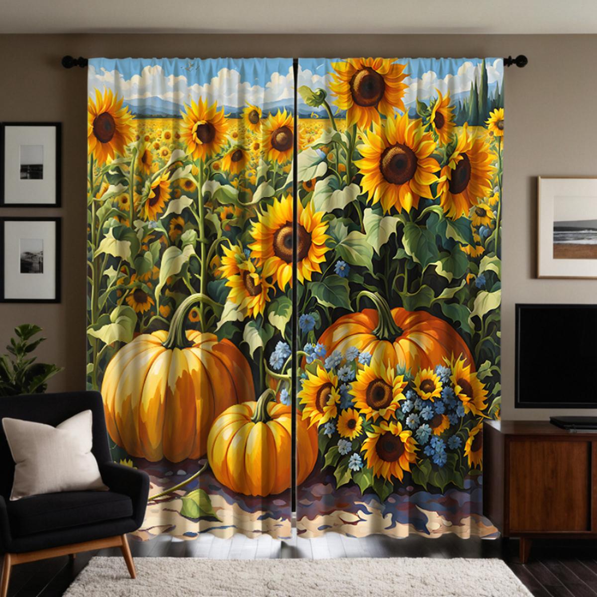 2 шт. HD Подсолнух Сад пейзаж декоративная штора Желтая завязка цифровая печать штора Украшение дома стиль украшения лив W52H63inchW132H160cm