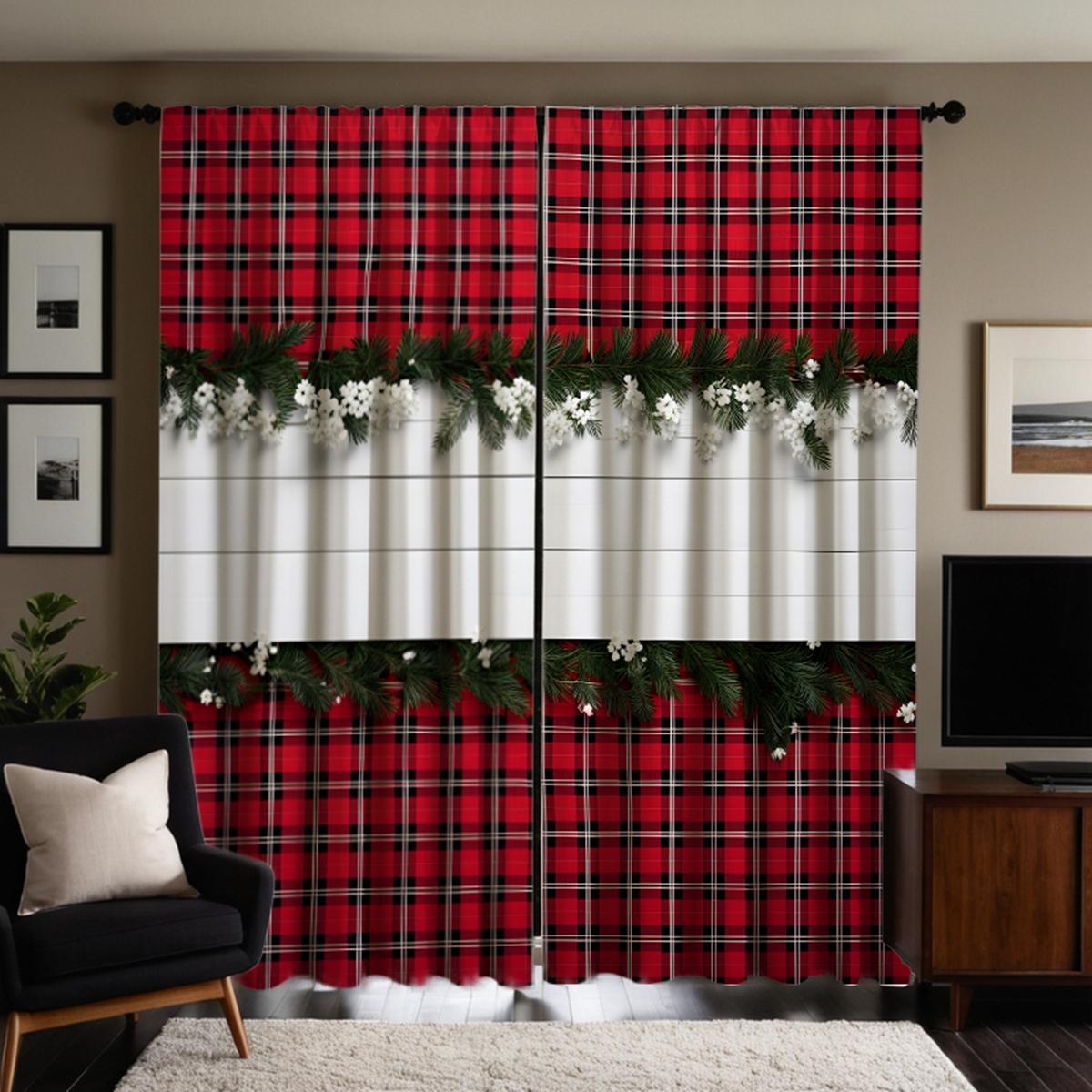 2 шт. HD Рождественская черная красная клетка зеленая ротанговая декоративная занавеска с красной завязкой цифровая печать занавеска украшение для дома стиль декор W52H63inchW132H160cm