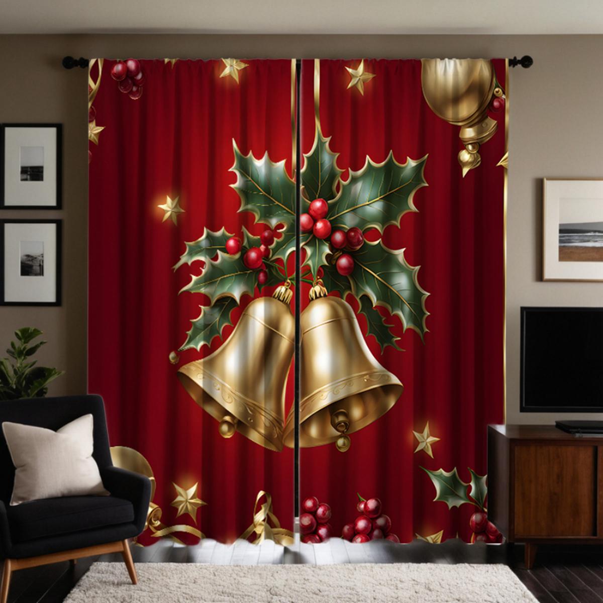 2 шт. HD Рождественский колокольчик подвеска Декоративная занавеска Красный галстук цифровая печать занавеска Стиль украшения дома Украшенная гостиная W52H63inchW132H160cm