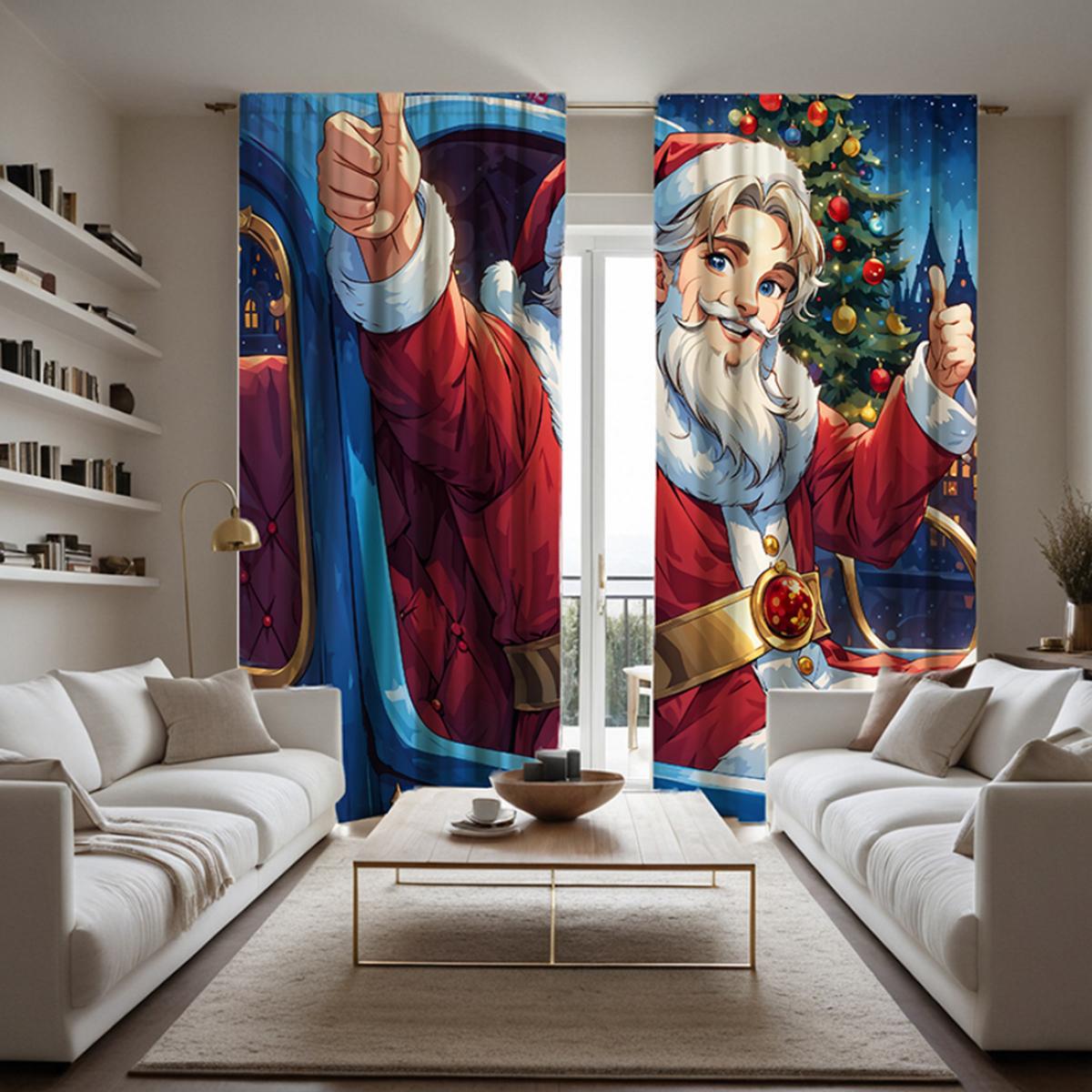 2 шт. HD Сани Санта украшения занавески Красный Галстук цифровой печатный занавес Домашнее украшение стиль Украсьте гостиную Спальня Мы W52H63inchW132H160cm