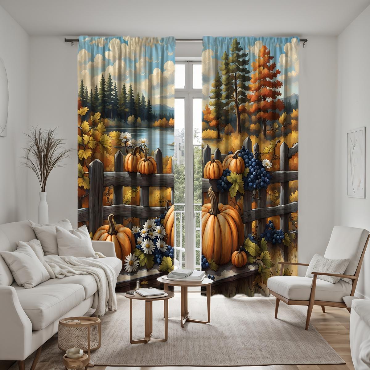 2 шт. HD наружная осенняя речная кромка тыква фрукт декоративная занавеска Желтая завязка цифровая печать занавеска украшение дома стиль d W52H63inchW132H160cm