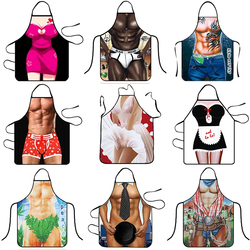 1/2PCS Funny Kitchen Customized Apron Digital Printed Muscle Man Sexy Women Home Cleaning Party Pattern Antifouling Cooking Logo