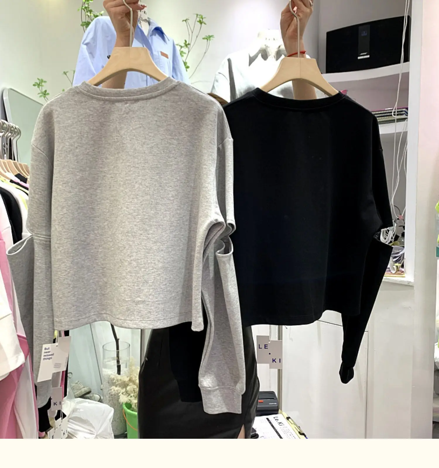 2021 Spring New Women Letter Printing Loose Hoodies All-Match Sportswear Round Neck Ripped Long Sleeve T-shirt Casual Sweatshirt