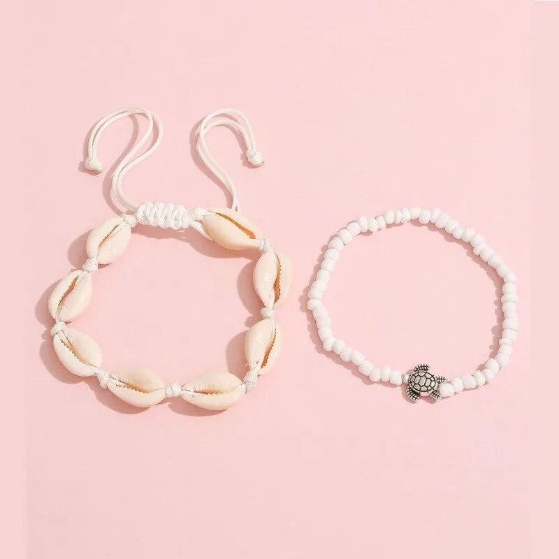 2-4 шт./компл., браслеты в богемном стиле с натуральными ракушками для женщин, модные летние пляжные браслеты Chian для босых ног, аксессуары для щиколотки на ноге E