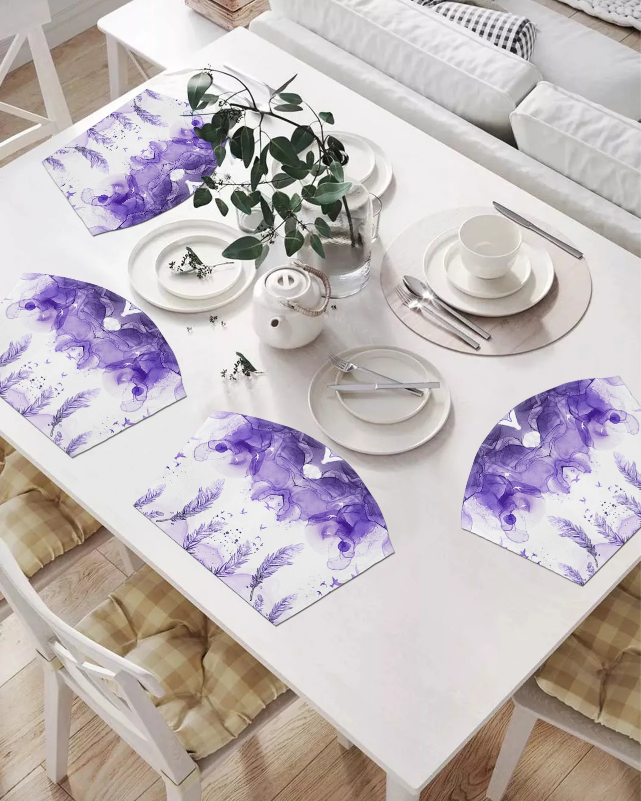 2/4/6 шт. набор подставок в форме веера, фиолетовые Перья, акварельные коврики для стола, подставка под чашу, коврик, Рождественский домашний д...