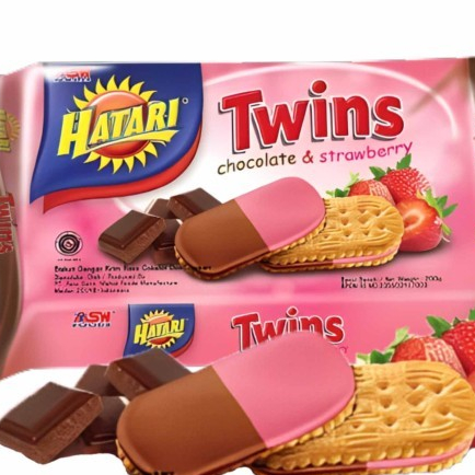 Hatari Twins / Biskuit Krim Renyah / Biskuit Rasa Chocolate & Strawberry / 190gr