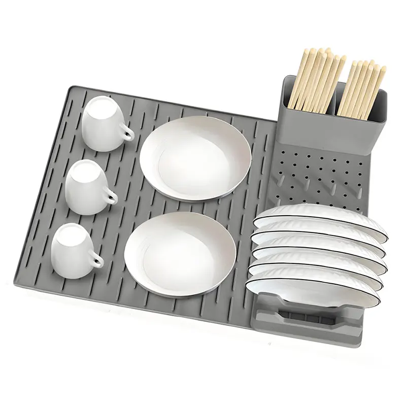 2 Pack Sink Dish Rack Set with Drying Mat Silicone Dish Plate Drying Rack Removable Tableware Storage Holder Organizer