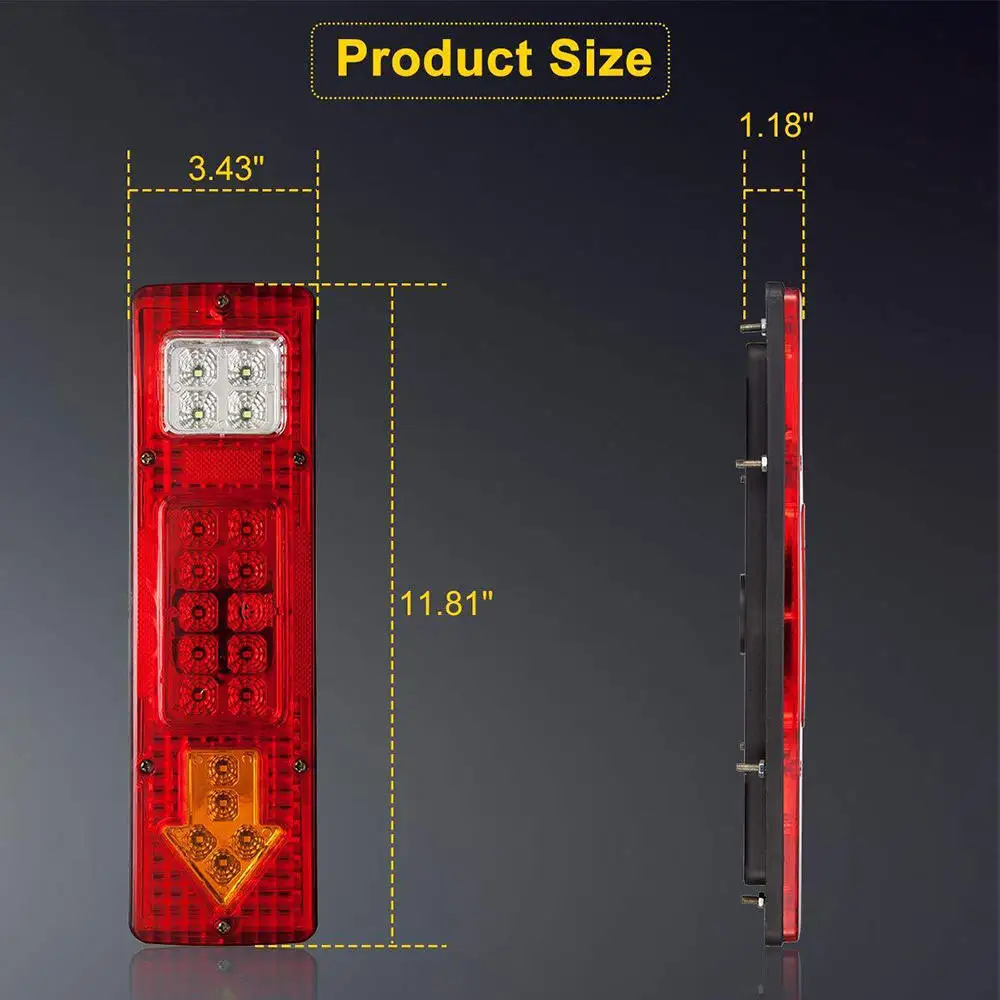 2 Pcs 12V 19-LED Trailer Car Rear Tail Brake Turn Lights Indicator Reverse Lamp