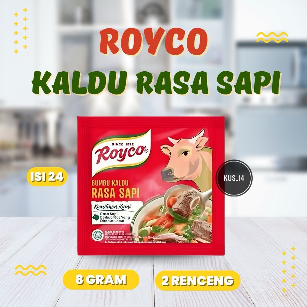 Royco Kaldu Sapi / Ayam dibuat dengan daging sapi / ayam yang direbus lama memberikan kaldu mantap dan rasa daging sapi /ayam lezat untuk semua masakan.