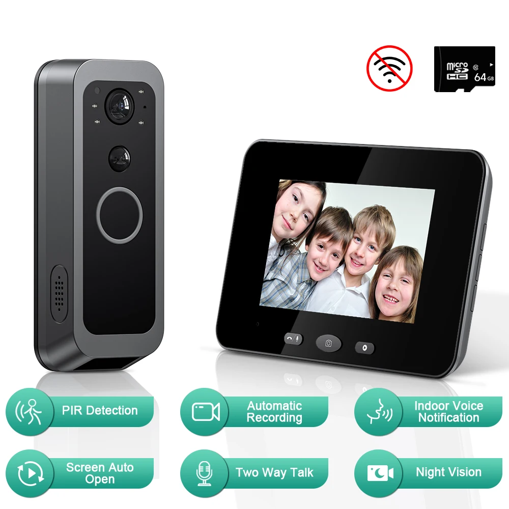 2 Way Audio Smart Wireless Doorbell Camera HD Night Vision Visual Intercom Doorbell Peephole Doorbell