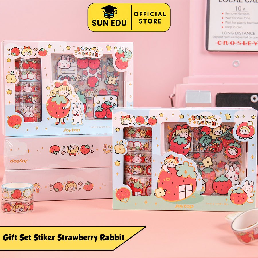 2 in 1 Gift Set DIY Stiker Strawberry Rabbit/ Sticker PVC Transparant Cute