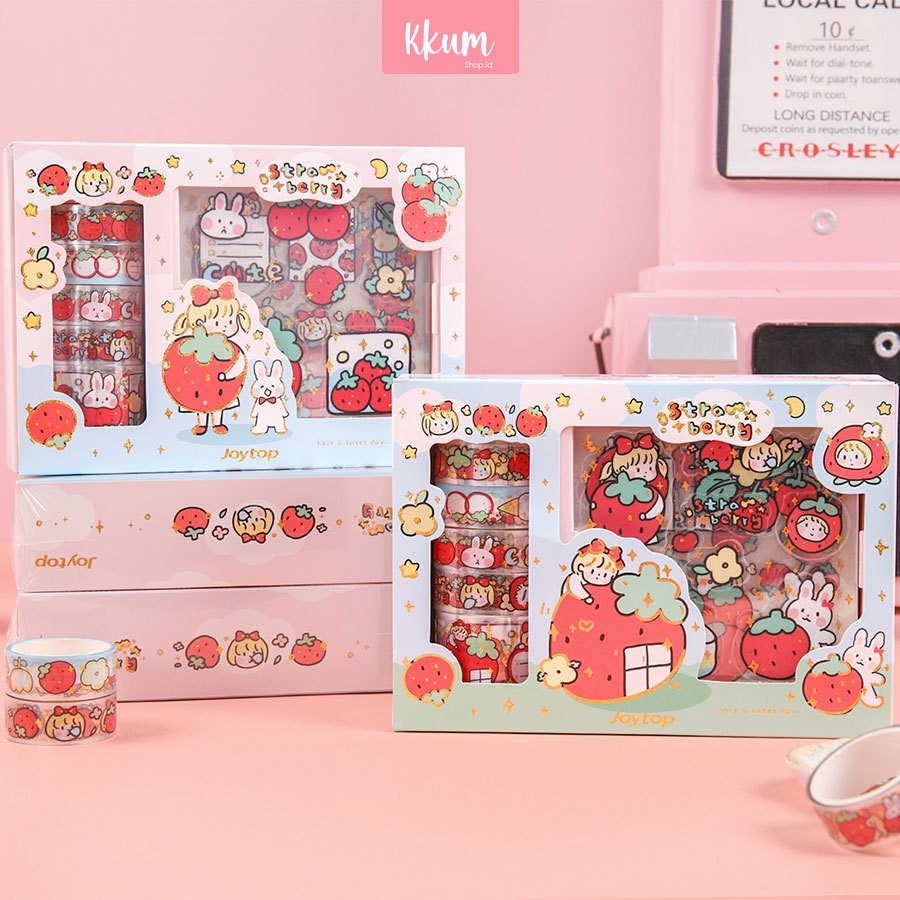 2 in 1 Gift Set DIY Stiker Strawberry Rabbit/ Sticker PVC Transparant Cute