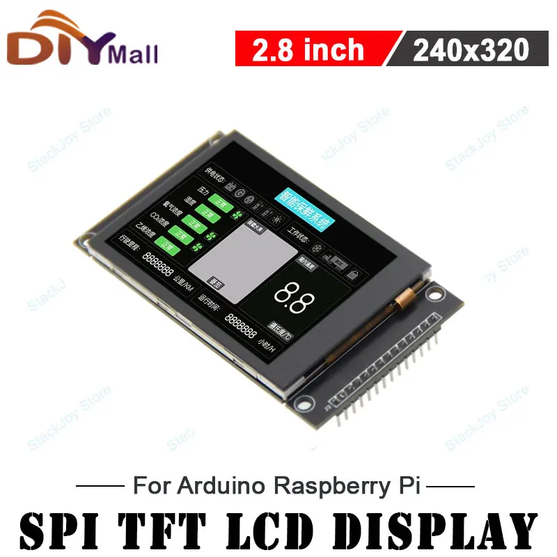 2.8" SPI TFT LCD Display 240x320 IPS Screen with Capacitive Touch Panel for Arduino Raspberry Pi ESP32 STM32 DIY Projects