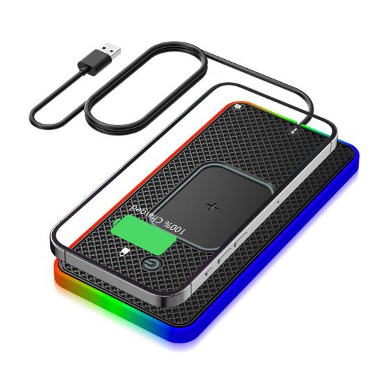 20 Вт Быстрая Беспроводная Зарядка для Телефона Автомобильная Зарядная Панель с Нескользящим Основанием 8 Цветов Подсветки Универсальный Коврик для Беспроводной Зарядки Телефона USB 100cm