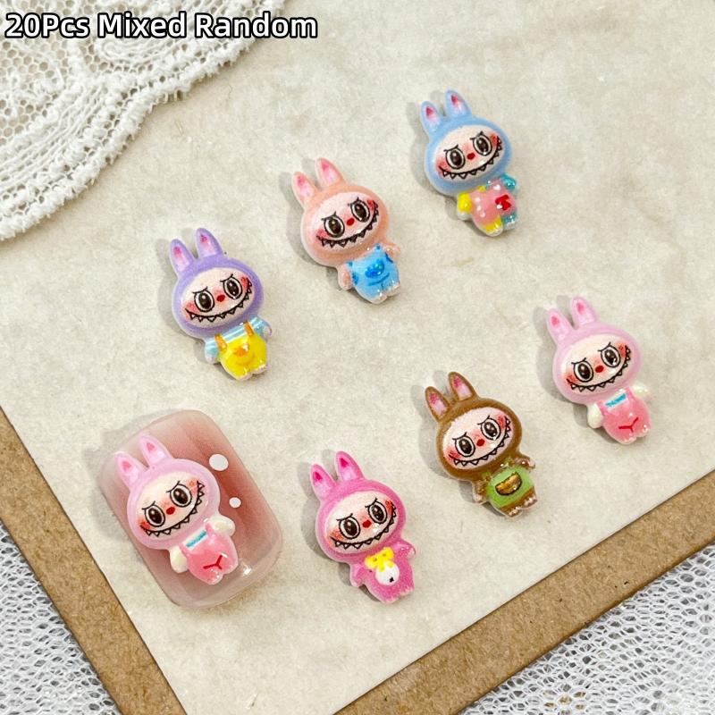 20 шт. Мультяшные смоляные шармы для ногтей в виде кроликов и эльфов, кавайные разноцветные украшения для нейл-арта Labubu, DIY материалы для маникюра и украшения чехла для телефона