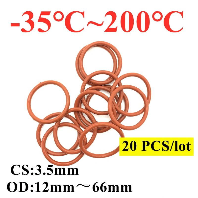20 шт. красное Силиконовое уплотнительное кольцо VMQ CS 3,5 мм OD 12 ~ 66 мм пищевая Водонепроницаемая шайба резиновая Изолированная круглая форма у...