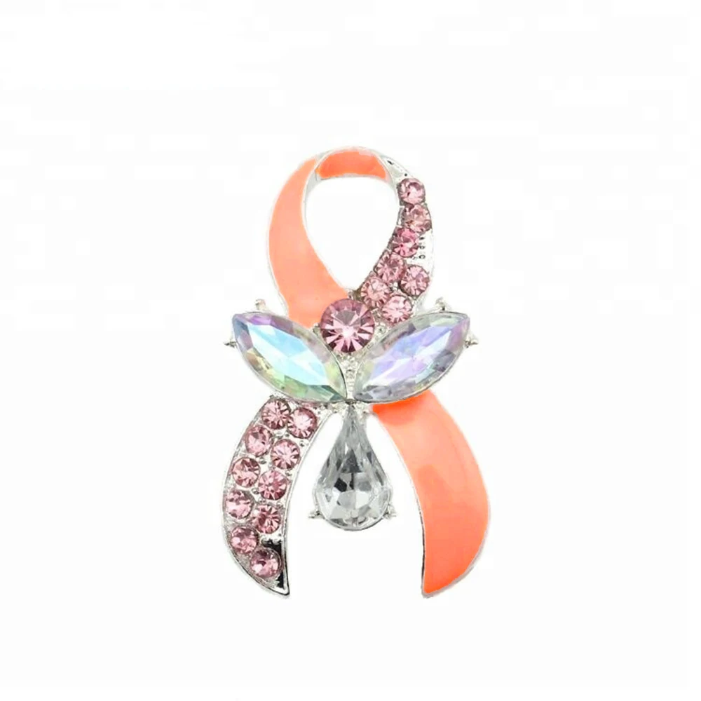 20 шт./лот акриловая розовая эмалированная лента в форме капли, брошь, значок о раке груди