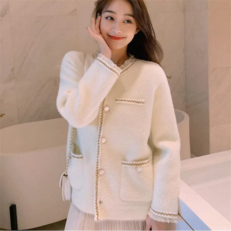 Mink Fleece Sweater Jacket Women 2022 Loose And Thick WesternLittle Fragrance Style Lazy Knit Top Cardigan Trend