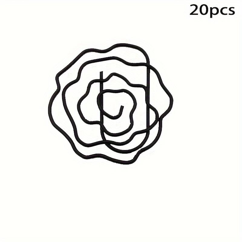 20 шт. скрепок в форме розы, канцелярские принадлежности, большие скрепки, нескользящая гладкая отделка, стальная проволока (Черно-белый) чёрный