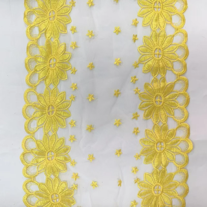 20 ярдов, двухцветное желтое цветочное украшение, тюль, вышивка, кружевная ткань, сетчатая юбка, кружевная отделка для нижнего белья, платья