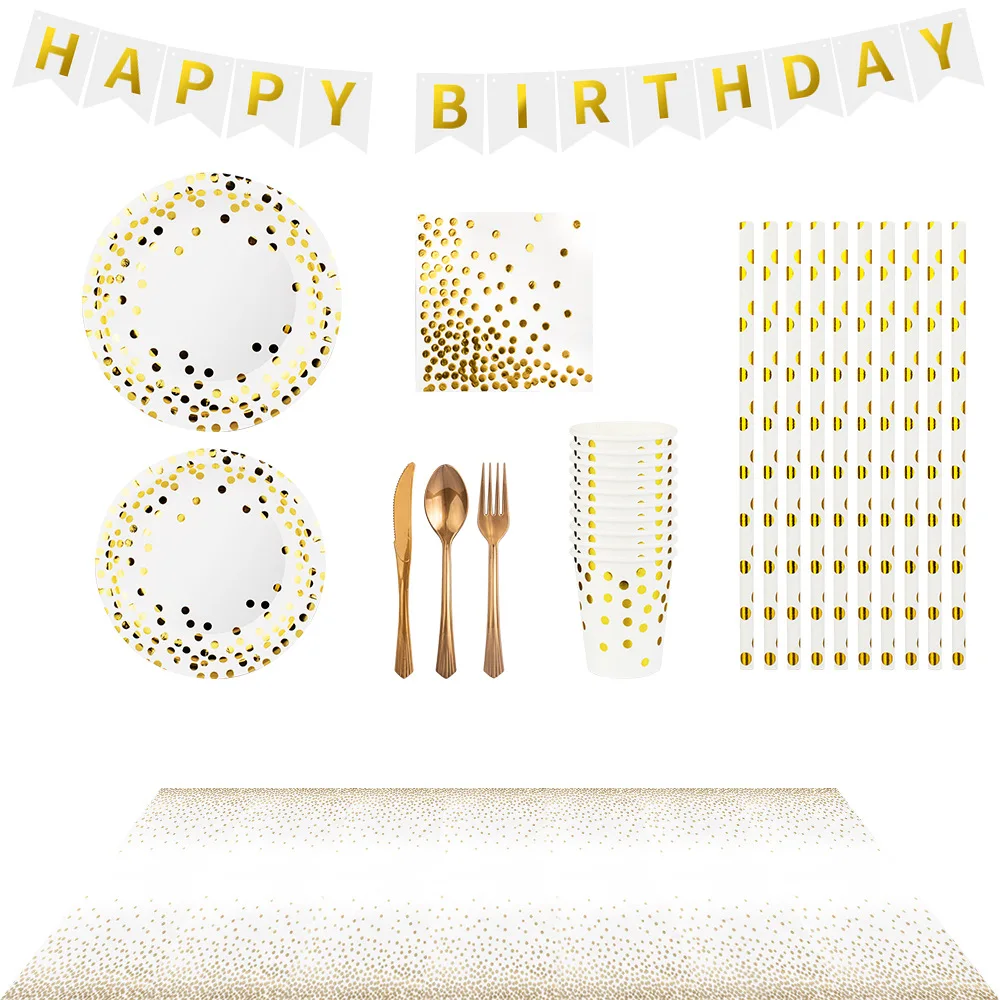 200 шт. Розовая белая Золотая фольга в горошек столовые приборы салфетка бумажное полотенце чашка тарелка одноразовый набор столовые прибор...