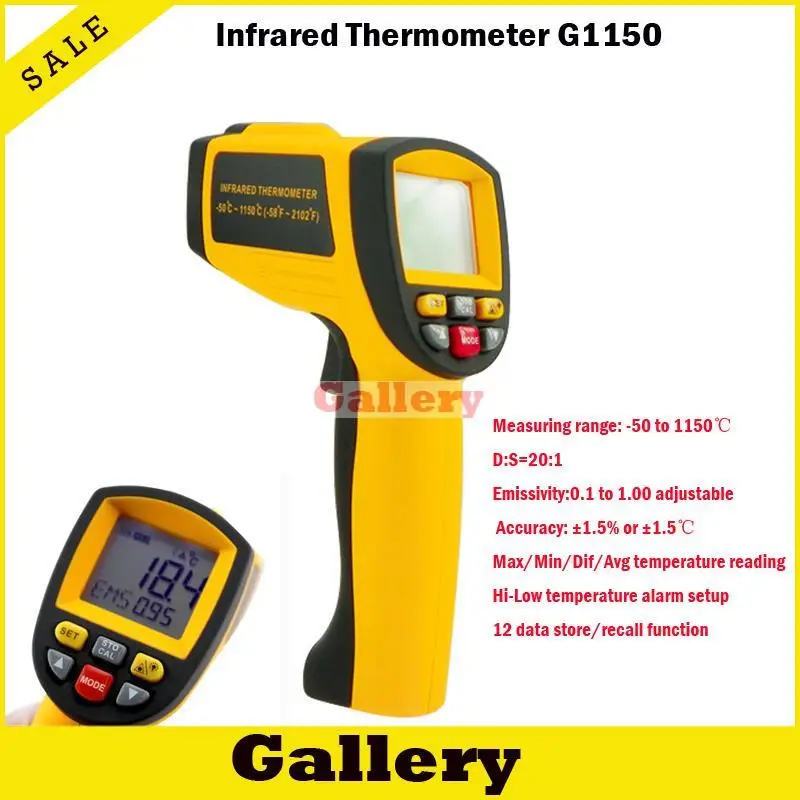 2015 Non-contact 12:1 Lcd Display Ir Infrared Digital Temperature Gun Thermometer 0.1~1.00 Adjustable Multifunctional Measuring