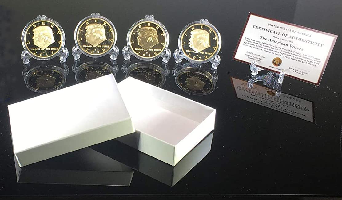 2017, 2018, 2019, 2020 Реплика золотой монеты Дональда Трампа, 45-е Президентское издание, Позолоченная 24 карата медаль и Дисплейная коробка eTradewinds... (первый