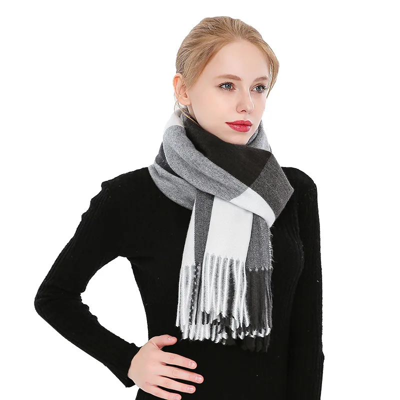2018 высокое качество искусственный кашемир большая клетчатая шаль Роскошная осень зима теплое кольцо мягкая женская кисточка женский толст...