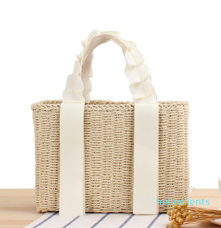 A generation of new minimalist portable woven Japanese and Korean Princess is a solid color straw leisure beach bag women's bag, Brown
