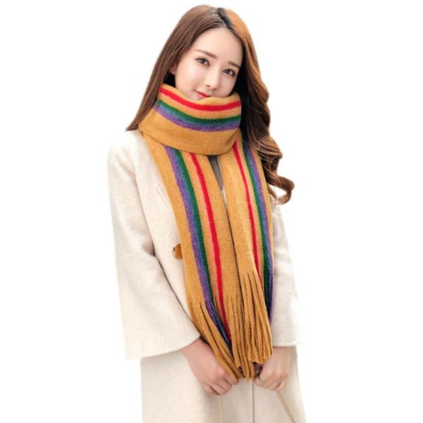 2018 мода тенденция зима новые красочные полосы имитация кашемировый шарф женский дикий толстый теплый шарф взрыв шаль cz237