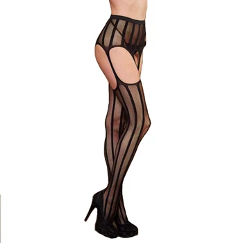 Women's Sexy Belt Mesh Tights Thigh High Silk Stockings Hollow Out Solid Fishnet Fancy Night Club Pantyhose