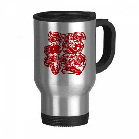 Blessing Paper Cut Flower Bird Fish Travel Mug Flip Lid Stainless Steel Cup Car Tumbler Thermos