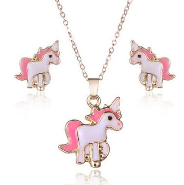 2018 розовый животных комплект ювелирных изделий дети ювелирные изделия мультфильм лошадь единорог ожерелье серьги единорог наборы для девоч, Black