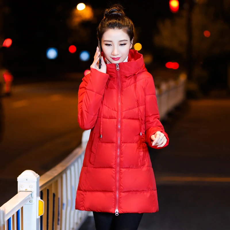 2019 Зима Новое поступление черные женские Базовая куртка размера плюс женская куртка с воротником-стойкой, тонкое платье, большой размер, те...