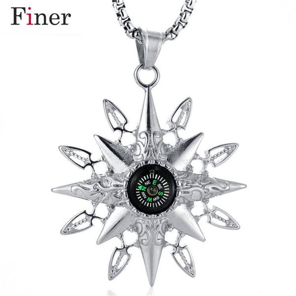2019 fiber new stainless steel compass pendant necklace fashion pendant long chain necklace male punk rock cool accessory
