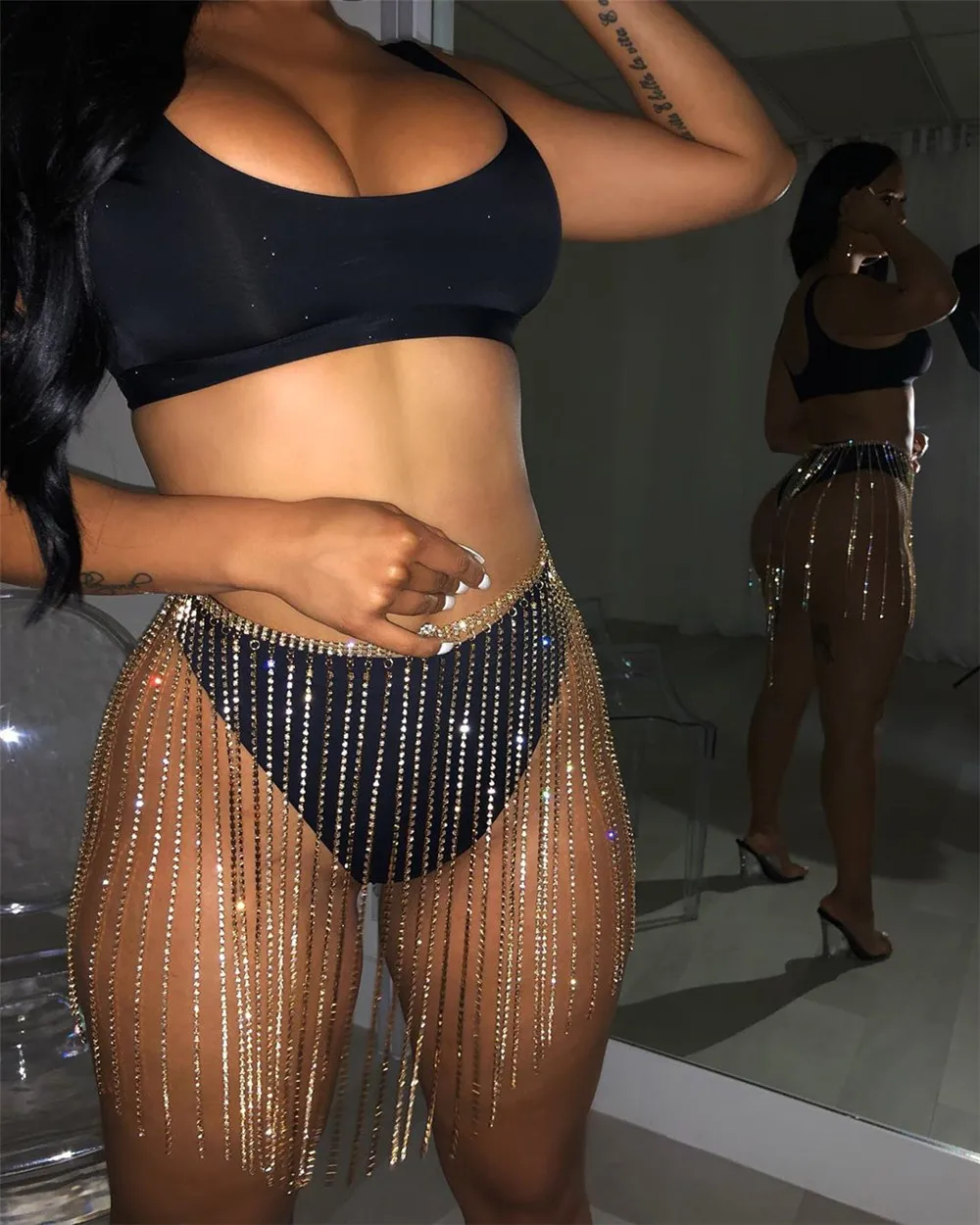 2019 европейские украшения Стразы, цепочка на талию, женский пояс из металлического сплава с широкой бахромой и кисточкой, цепочка на талию, летняя юбка, ювелирные изделия для тела
