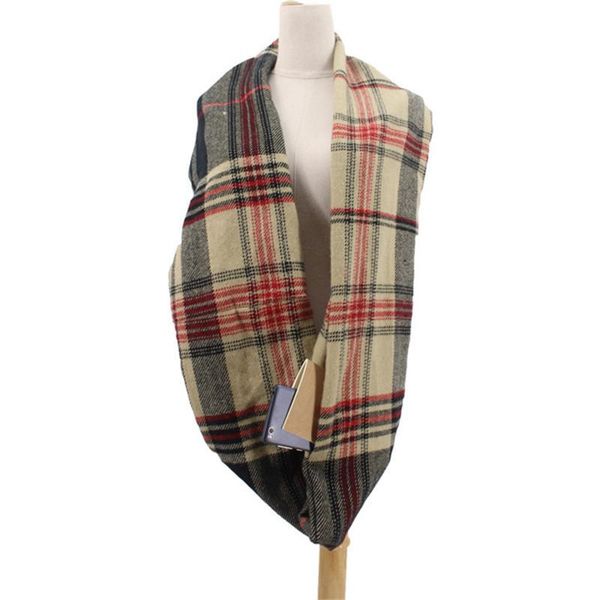 2019 клетчатый зимний шарф с карманом вязаный теплый кабриолет путешествие женщин человек обернуть с секретной скрытой молнией карманный бес, Blue;gray