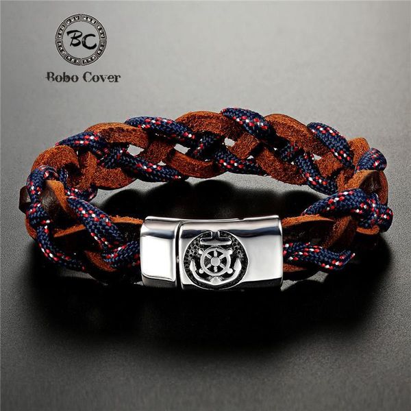 2019 мода плетеный многослойный geunine кожаный браслет мужчины женщины нержавеющая сталь открытый военно-морской якорь s homme, Golden;silver